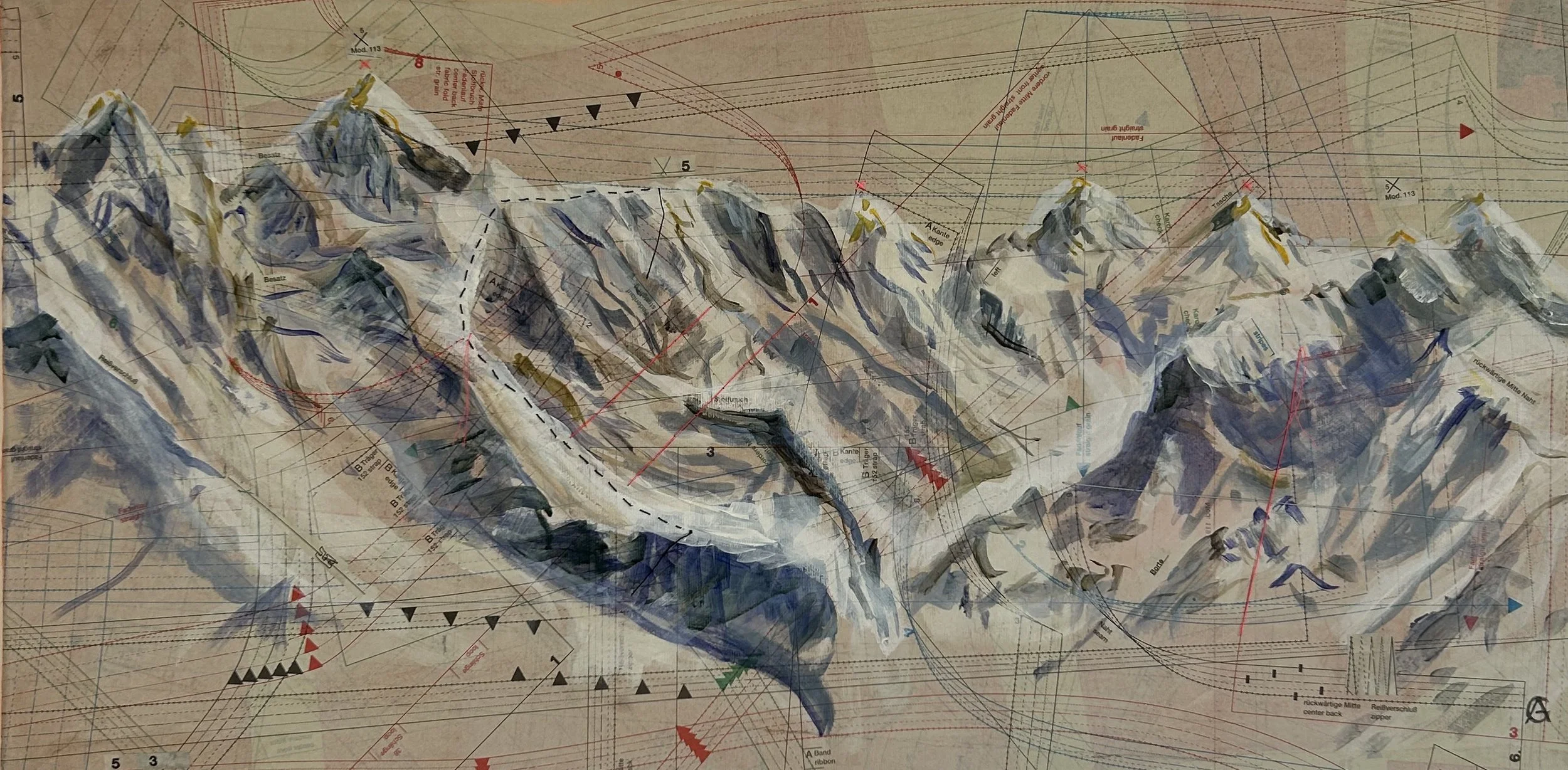 Nahtspitzen Mixed Media auf Schnittmusterpapier, 50 x 50 cm
